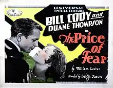 The Price of Fear is a 1928 American silent Western film directed by Leigh Jason and starring Bill Cody, Duane Thompson and Tom London.[1]