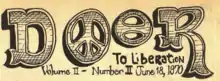 In 1969 the paper became Door to Liberation, and after switching to free distribution in local drop boxes, with a 10,000 copy run, it became the Free Door to Liberation.