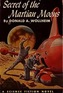 The Secret of the Martian Moons is a science-fiction novel by Donald A. Wollheim. It was first published in 1955 by the John C. Winston Company. Playing world-class hide-and-seek with the Martians, Nelson Parr believes that he has found them... until the real Martians show up. This is the second novel that Wollheim wrote for Winston, the other two being The Secret of Saturn's Rings (1954) and The Secret of the Ninth Planet (1959).
