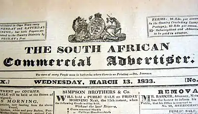 - ↑ "The South African Commercial Advertiser 1824-1856". www.eggsa.org. Archived from the original on 2013-01-17.