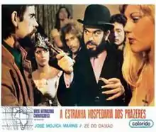 The Strange Hostel of Naked Pleasures (Portuguese: Estranha Hospedaria dos Prazeres) is a 1976 Brazilian film by Brazilian horror film director José Mojica Marins. Marins is also known by his alter ego Zé do Caixão (in English, Coffin Joe). The film features Coffin Joe as the main character, although it is not part of the "Coffin Joe trilogy" (At Midnight I'll Take Your Soul, This Night I Will Possess Your Corpse, and Embodiment of Evil).[1][2]
