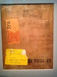 Back of the painting, with inscription by Serusier: "Made in October 1888 under the direction of Gauguin by P. Sérusier at Pont-Aven."