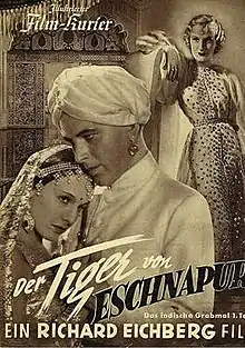 The Tiger of Eschnapur (originally Der Tiger von Eschnapur) is a 1938 German film directed by Richard Eichberg and starring Philip Dorn, La Jana and Theo Lingen. It was followed by a second part The Indian Tomb which was released the same year.