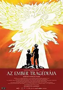 The Tragedy of Man (Hungarian: Az ember tragédiája) is a 2011 Hungarian adult animated epic drama film directed by Marcell Jankovics, starring Tibor Szilágyi, Mátyás Usztics, Ágnes Bertalan, Tamás Széles and Piroska Molnár. The narrative is set in several different eras, spanning from Biblical creation to 50,000 BC to the distant future, and follows Adam, Eve, and Lucifer as they explore humanity and the meaning of life. Each segment has a different visual style to reflect the art of the respective time periods. The film is based on the 1861 play The Tragedy of Man by Imre Madách.