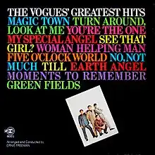 The Vogues' Greatest Hits is an LP album by The Vogues, released by Reprise Records (RS 6371) in 1970, consisting of the group's charted hits from the Co & Ce and Reprise labels. For this collection, arranger Ernie Freeman wrote orchestral parts to overdub the original Co & Ce masters of "You're the One", "Five O'Clock World", and "Magic Town" since all the Reprise songs were orchestrated.