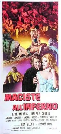 The Castellana caves which still serve as a tourist attraction, were used for the underground scenes.[3] The sequences set in the Hell were entirely filmed in the Castellana Caves, in the province of Bari.[4] Maciste, the leading character, was turned during the filming into an almost mute character as Freda was very unhappy with the acting skills of the main actor Kirk Morris.[4] The film is referred as "an interpretation of mythology cum the gothic horror genre".[5]