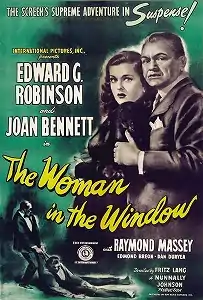 The Woman in the Window is a 1944 American film noir directed by Fritz Lang and starring Edward G. Robinson, Joan Bennett, Raymond Massey, and Dan Duryea. It tells the story of a psychology professor[2] (Edward G. Robinson) who meets a young femme fatale (Joan Bennett) and murders her lover in self-defense.[3]