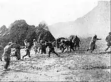Fleeing villagers from the erupting volcano