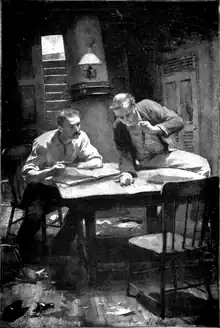 The story is a "sprawling, episodic adventure story, a comedy of brash manners and something of a detective mystery", according to Roderick Watson.[1] It revolves around the abandoned wreck of the Flying Scud at Midway Atoll. Clues in a stamp collection are used to track down the missing crew and solve the mystery. It is only in the last chapter that different story elements become linked.[2] Stevenson described it as a "South Sea yarn" concerning "a very strange and defective plan that was accepted with open eyes for what seemed countervailing opportunities offered". The book sold well but reviews were mixed, with a New York Times reviewer concluding that:[2]