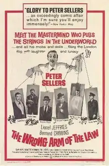 The Wrong Arm of the Law is a 1963 British comedy film directed by Cliff Owen and starring Peter Sellers, Bernard Cribbins, Lionel Jeffries, John Le Mesurier and Bill Kerr.[2] It was partly written by Ray Galton and Alan Simpson and made by Romulus Films.[3]