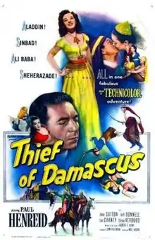 Thief of Damascus is a 1952 American Technicolor adventure film directed by Will Jason and starring Paul Henreid, John Sutton and Jeff Donnell.[1] The film features a generous use of stock footage from such films as Joan of Arc. The film, produced by Sam Katzman, was preceded by his The Magic Carpet and followed by Siren of Bagdad.