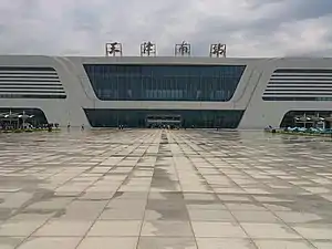 Tianjin South railway station (Chinese: 天津南站; pinyin: Tiānjīn Nán zhàn) is a high-speed railway station in Xiqing District, Tianjin, China.[1] It is served by some trains on the Beijing–Shanghai high-speed railway.