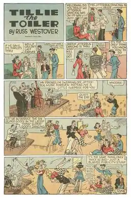 Tillie the Toiler is a newspaper comic strip created by cartoonist Russ Westover who initially worked on his concept of a flapper character in a strip he titled Rose of the Office. With a title change, it sold to King Features Syndicate which carried the strip from January 3, 1921, to March 15, 1959.[1]