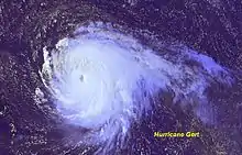 The 1999 Atlantic hurricane season was an event in the annual tropical cyclone season in the north Atlantic Ocean. This Atlantic hurricane season saw a near-average number of named tropical storms,[1][nb 1] though five of them became dangerous hurricanes of Category 4 intensity on the 5-level Saffir–Simpson scale, the most in a single season since 1886.[3] The season officially began on June 1, 1999 and ended on November 30, 1999. These dates, adopted by convention, historically describe the period in each year when most tropical systems form.[4] This season's first storm, Tropical Storm Arlene, formed on June 11, while the last, Hurricane Lenny, dissipated on November 23.