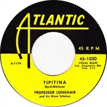 "Tipitina" is a song written and made famous by Professor Longhair. The song has been widely covered, and the Professor Longhair version was recorded in 1953 for Atlantic Records. "Tipitina" was first released in 1953. A previously unreleased alternate take (also recorded in 1953) was released on the album New Orleans Piano in 1972. Although the nature of his contributions are unknown, recording engineer Cosimo Matassa is listed as the song's co-writer along with Roy Byrd, Professor Longhair's legal name.[1]