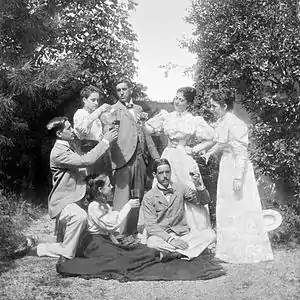 The early 1900s are marked by relative Olazábal's inactivity; he is noted only for occasional Saint-Jean-de-Luz conferences with other Carlist leaders.[184] In pieces published by Spanish press envoys he was presented, “surrounded by his family”, as sort of a local tourist attraction.[185] By this time, Villa Arbelaiz became a social center of Saint-Jean-de-Luz welcoming close friends and relatives of the Olazábal family and notable personalities associated with legitimist movements. Among its regular visitors were Don Jaime de Borbón, the former Queen Natalie of Serbia, the Countess of Bardi, Princes and Princesses of Bourbon-Parma, Italian aristocrats, the Duchess of Cadaval, the Counts O'Byrne of Corville and several Carlist politicians.