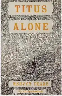 Titus Alone is a novel written by Mervyn Peake and first published in 1959. It is the third work in the Gormenghast trilogy. The other works are Titus Groan, and Gormenghast. With the trilogy, a fourth work, the novella Boy in Darkness, and a fifth, the fragment Titus Awakes, are often considered part of a larger "Gormenghast series". It was re-edited by Langdon Jones in 1970 using the original manuscript.[1]