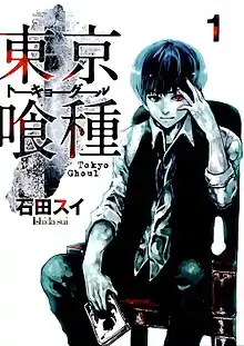 Tokyo Ghoul (Japanese: 東京喰種, Hepburn: Tōkyō Gūru) is a Japanese dark fantasy manga series written and illustrated by Sui Ishida. It was serialized in Shueisha's seinen manga magazine Weekly Young Jump from September 2011 to September 2014, with its chapters collected in 14 tankōbon volumes. The story is set in an alternate version of Tokyo where humans coexist with ghouls, beings who look like humans but can only survive by eating human flesh. Ken Kaneki is a college student who is transformed into a half-ghoul after an encounter with one of them. He must navigate the complex social and political dynamics between humans and ghouls while struggling to maintain his humanity.
