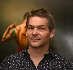 Tomáš Kubík often inserts some extraneous details into paintings, that are inspired by classical paintings and created with the same technique, to make it clear that they are contemporary works.[17] Michelangelo's idealised male nudes from the ceiling of the Sistine Chapel, called Ignudi, served as compositional models for his hyperrealistic male nudes.[18] To portray them, he somewhat provocatively chose contemporary human types from the fitness centre, with pronounced musculature, tattoos and uniformly tanned skin from the solarium. In doing so, the painter had to transpose the original mannerist composition, intended for the ceiling, into a real, believable and unobtrusive position.[5]
