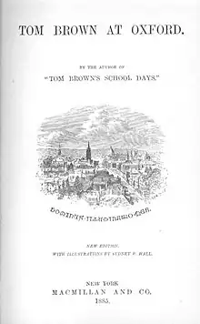 Tom Brown at Oxford is a novel by Thomas Hughes, first published in serial form in Macmillan's Magazine in 1859. It was published in two volumes in book form in 1861.[1] It is a sequel to the better-known Tom Brown's School Days.