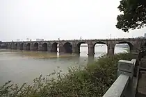 The bridge goes across the Wu River (婺江), and has a total history of more than 600 years.[1]