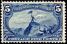The Trans-Mississippi Issue is a set of nine commemorative postage stamps issued by the United States to mark the 1898 Trans-Mississippi Exposition held in Omaha, Nebraska. The finely engraved stamps depict various scenes of the West and are presently valued much by collectors. This was only the second commemorative issue offered by the U.S. Post Office and closely followed the pattern of its predecessor, the Columbian Exposition series of 1893: both sets appeared in conjunction with important international world's fairs; both offered a wide range of stamp denominations; both adopted the double-width stamp format to accommodate pictorial tableaux.