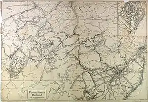 1911 map of Pennsylvania Railroad "Lines East" including Lancaster County
