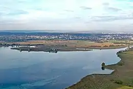 ![]() The Triboldingerbohl at the transition from Seerhein (right) into Untersee, Constance in the background. | |