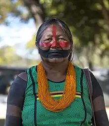 Tuíre Kayapó, also called Tuíra (born 1969/1970),[1] is a Brazilian indigenous rights activist, environmentalist, and a chief of the Kayapó people. She was active in the movement against the Bela Monte Dam project on the Xingu River in the 1980s and constitutional amendment PEC 215 in the 2010s.[2][3]