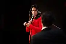 - ↑ Astor, Maggie (January 11, 2019). "Tulsi Gabbard, Representative From Hawaii, Announces Democratic Presidential Bid". The New York Times. ISSN 0362-4331. Retrieved August 6, 2019.