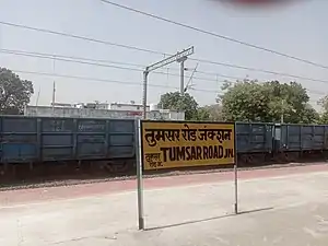 Tumsar Road Junction railway station (station code:- TMR) serves Tumsar City [1] and the surrounding area in Bhandara district in Maharashtra, India. The station consists of five platforms. The platforms are not well sheltered. It lacks many facilities including water and sanitation.[2]