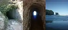 Tunnel Beach is a locality 7.5 kilometres (4.7 mi) southwest of the city centre of Dunedin, New Zealand. Located just south of St Clair, Tunnel Beach has sea-carved sandstone cliffs, rock arches and caves.[1] Beyond the beauty of the rugged sandstone cliffs, its claim to fame is the tunnel down to the beach that a local politician, John Cargill, son of Captain William Cargill, had commissioned for his family in the 1870s.[2] Local legend says that one or more of Cargill's daughters drowned while swimming at the beach, but there is no truth to this story.[3]