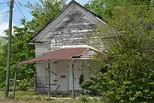 • Emanuel County Institute School Auditorium (1954), Modern-style brick building with clerestory windows, and with a concrete canopy over its metal entrance doors (photo 22)[3]:5
