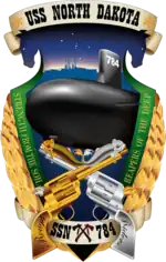 USS North Dakota (SSN-784) is a Virginia-class nuclear powered attack submarine of the United States Navy. She is the second U.S. Navy vessel to be named for the U.S. state of North Dakota, the first being World War I-era battleship USS North Dakota (BB-29). The contract to build her was awarded to Electric Boat division of General Dynamics in Groton, Connecticut, on 14 August 2003. Her name was announced on 15 July 2008.[6] and her keel was laid down on 11 May 2012.[7] She was floated on 15 September 2013 and was christened on 2 November 2013, sponsored by Katie Fowler, wife of Vice Admiral Jeff Fowler.[8] She was commissioned in Groton, Connecticut, on 25 October 2014.