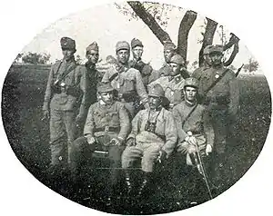 On September 30, 1916, the Legion was almost completely routed in an engagement at Potutory, near Bereschany. Because of a breakthrough in the adjacent section of the front, Russian troops were able to completely surround and capture the Legion. During the regrouping it was assigned the "K.u.k. Hutsulenkompanie" (the former "Ruthenian" or "Bukovina Volunteer Battalion") was incorporated into it as a separate company.[5] A similar thing happened on July 1, 1917, when, at the beginning of the Kerensky Offensive, once again almost the entire part of the Legion in action was trapped by a Russian attack near Berezhany.[6] The German occupation of Ukraine at the beginning of 1917 led to the capture of the Legion.