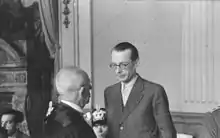 Schwerin's family moved to Dresden when he was twelve years old. He finished school at the convent of Roßleben, Thuringia in 1921 and went to study agronomy at the Technische Hochschule of Munich. As a witness of the 1923 Beer Hall Putsch, he found Nazism loathsome to his Christian and social convictions (he was a Knight of Justice in the Protestant Order of Saint John, to which he had been admitted in 1933[1]). Schwerin was graduated at Breslau in 1926 and administered his family's manors in Göhren (today part of Woldegk, Mecklenburg) and Sartowice near Świecie, Pomerelia in Poland. In 1928, he married Marianne Sahm, a daughter of Heinrich Sahm, then president of the Free City of Danzig senate.