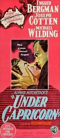 Under Capricorn is a 1949 British historical drama film directed by Alfred Hitchcock about a couple in Australia who started out as lady and stable boy in Ireland, and who are now bound together by a horrible secret. The film is based on the play by John Colton and Margaret Linden, which in turn is based on the novel Under Capricorn (1937) by Helen Simpson. The screenplay was written by James Bridie from an adaptation by Hume Cronyn. This was Hitchcock's second film in Technicolor, and like his preceding color film Rope (1948), it features 9- and 10-minute long takes.