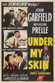 Under My Skin is a 1950 American sports drama film directed by Jean Negulesco and starring John Garfield and Micheline Presle. It is based on the 1923 short story "My Old Man", by Ernest Hemingway, about a jockey being threatened by a mobster after winning a race he had agreed to throw.