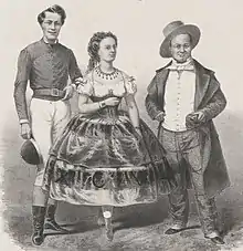 Pierre Mesmacre, Lise Tautin and Désiré in costumes of Une demoiselle en loterie