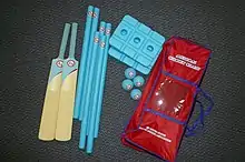 Another key development that summer was the introduction to USYCA of Maria Grossi, and DTY Pty Ltd., an Australian firm that was the supplier of cricket sets and apparel to Cricket Australia's MILO In2Cricket program. The referral came by way of Rebecca Mulgrew of CA, who first came into contact with Harrison in 2009 while he was coaching the cricket team at Cardinal Gibbons School in Baltimore.[19] By August, DTY was in discussions with USYCA that would result in the donation of 500 custom-made cricket sets, designed especially for the USYCA Schools Program.[2] These sets would eventually be named the American Cricket Champ, and was the first set ever produced specifically for the American market.[3]