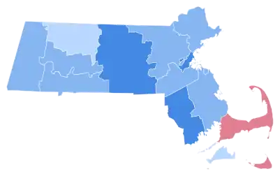 | Nantucket | 1,115 | 42.46% | 1,399 | 53.27% | 112 | 4.27% | -284 | -10.81% | 2,626 |