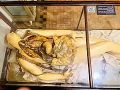 This section also displays two anatomical wax models,[20][21] which were sculpted by Clemente Susini which was modelled after Felice Fontana's dissections,[22] as well as a collection of skulls from people such as Giovanni Gorini (a math professor), Giuseppe Moretti (director of the botanical garden), Pasquale Massacra (painter), Antonio Bordoni (mathematician) a reproduction cast of the skulls belonging to Ugo Foscolo, Francesco Petrarca, Gian Galeazzo Visconti as well as a plaster cast of Alessandro Volta's unusually large skull.[19][23]