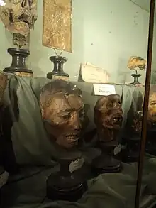 The collection also includes Antonio Scarpa's dismembered head,[24][25] both his kidneys and four of his fingers with blackened nails, all meticulously preserved. Other anatomical samples include the aneurysm that killed mathematician Vincenzo Brunacci in 1818 and the bladder of naturalist Lazzaro Spallanzani, who died of kidney cancer in 1799. Scarpa's chair[26] and ivory surgical dissection instruments donated by Joseph II in 1786 are also part of the museum's collection. Other memorabilia include a number of fetal skeletons from post-natal deaths as well drawings, histological samples by Bartolomeo Panizza and a collection of surgery tools used by Giovanni Alessandro Brambilla, which were listed in his manuscript "Instrumentarium Chirurgicum Militare Austriacum".[18]