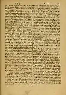 - 1 2 Diderot, Denis. (1751). Aguaxima. Encyclopédie ou Dictionnaire raisonné des sciences, des arts et des métiers, par une Société de Gens de lettres. Retrieved 16 September 2013 from The Project for American and French Research on the Treasury of the French Language (ARTFL) Archived.