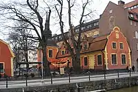 The nation's building (Swedish: nationshus) lies along the Fyrisån and was probably built in 1604, though its cellar is much older. The building survived a citywide fire in 1702, unusually for central Uppsala. Amongst the building's former owners was Field Marshal Lennart Torstenson, and it has been in the nation's possession since 1825.