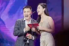 Văn Mai Hương stands to the right of Dương Anh Vũ at VEA 2021