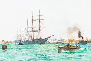 He took her to Newport, Rhode Island for the America's cup of 1895-1896, and gave Lord Dunraven a lift home via New York on 28 September 1895. The race was notable for Dunraven's allegations of cheating by the winning American yacht, Defender.[7]