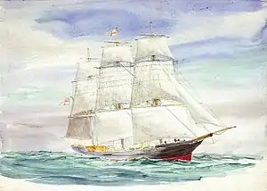 Her first owner was Capt. J. F. Laycock of Bawtry, Portsmouth, a British Army officer and Olympic sailor. Laycock, a member of the Royal Yacht Squadron at Cowes,[2] he commissioned Ramage & Ferguson of Leith in 1892 to build him a steel auxiliary three masted steam yacht. Laycock had envisioned his own private clipper ship, a three-quarter sized version of the Cutty Sark. He drew up some basic outline plans, and handed them over to Mr. W. C. Storey, who produced detailed plans for both the yacht, and its auxiliary power unit. The design had its critics, but the ship was found to have excellent sailing qualities. She is believed by many to have been the finest example of a steam auxiliary ever built.[3]