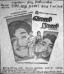 Vani Rani is a 1974 Indian Tamil-language film, directed initially by Tapi Chanakya and finished by C. V. Rajendran. Produced by Nagi Reddi and Chakrapani. The film stars Sivaji Ganesan, Vanisri and R. Muthuraman. It is a remake of the Hindi film Seeta Aur Geeta. The film was released on 14 April 1974,[1] delayed by two days.[2]