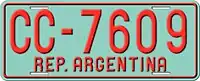 Consular corps | CC-1234 | orange on teal; "Rep. Argentina" legend; longer plate size |